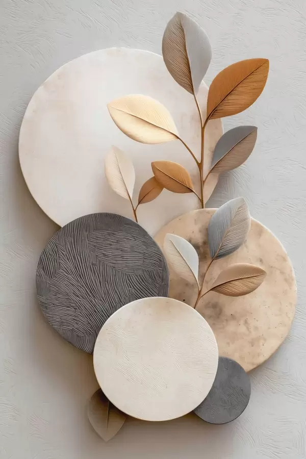 Plakat Kręgi i gałęzie liści f48223