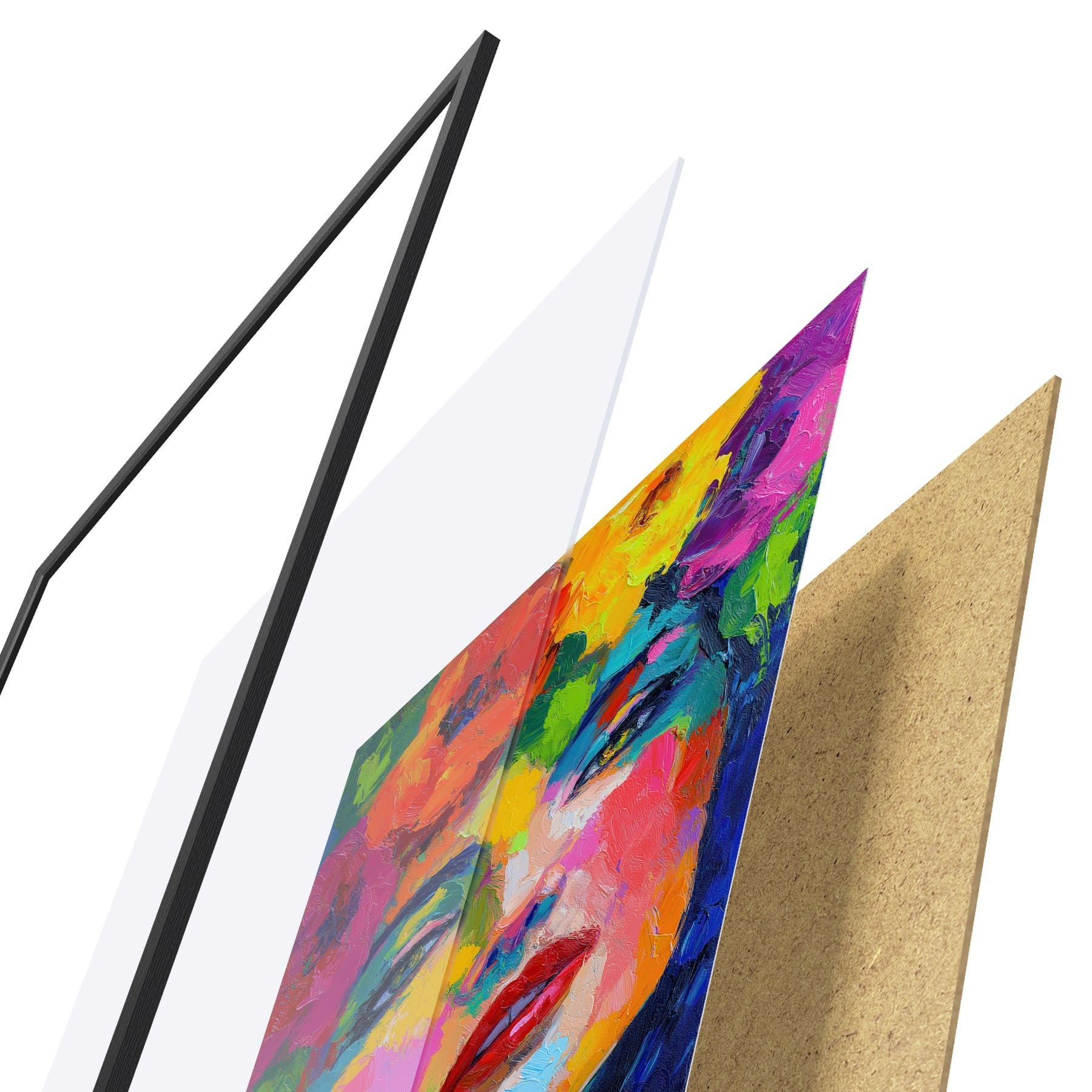 Plakat składa się z ramy, pleksi, wydrukowanego obrazu i podkładu z płyty wiórowej. Plakat można natychmiast zawiesić na ścianie dzięki uchwytom z tyłu.