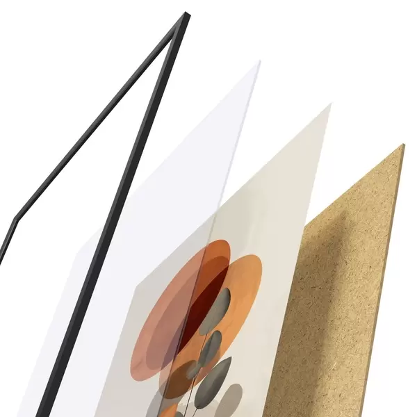 Plakat składa się z ramy, pleksi, wydrukowanego obrazu i podkładu z płyty wiórowej. Plakat można natychmiast zawiesić na ścianie dzięki uchwytom z tyłu.