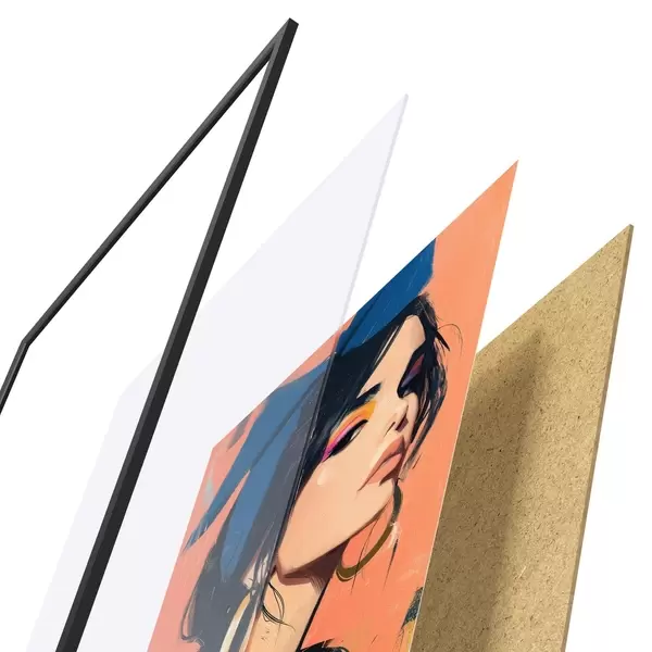 Plakat składa się z ramy, pleksi, wydrukowanego obrazu i podkładu z płyty wiórowej. Plakat można natychmiast zawiesić na ścianie dzięki uchwytom z tyłu.