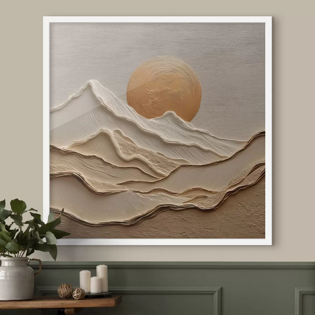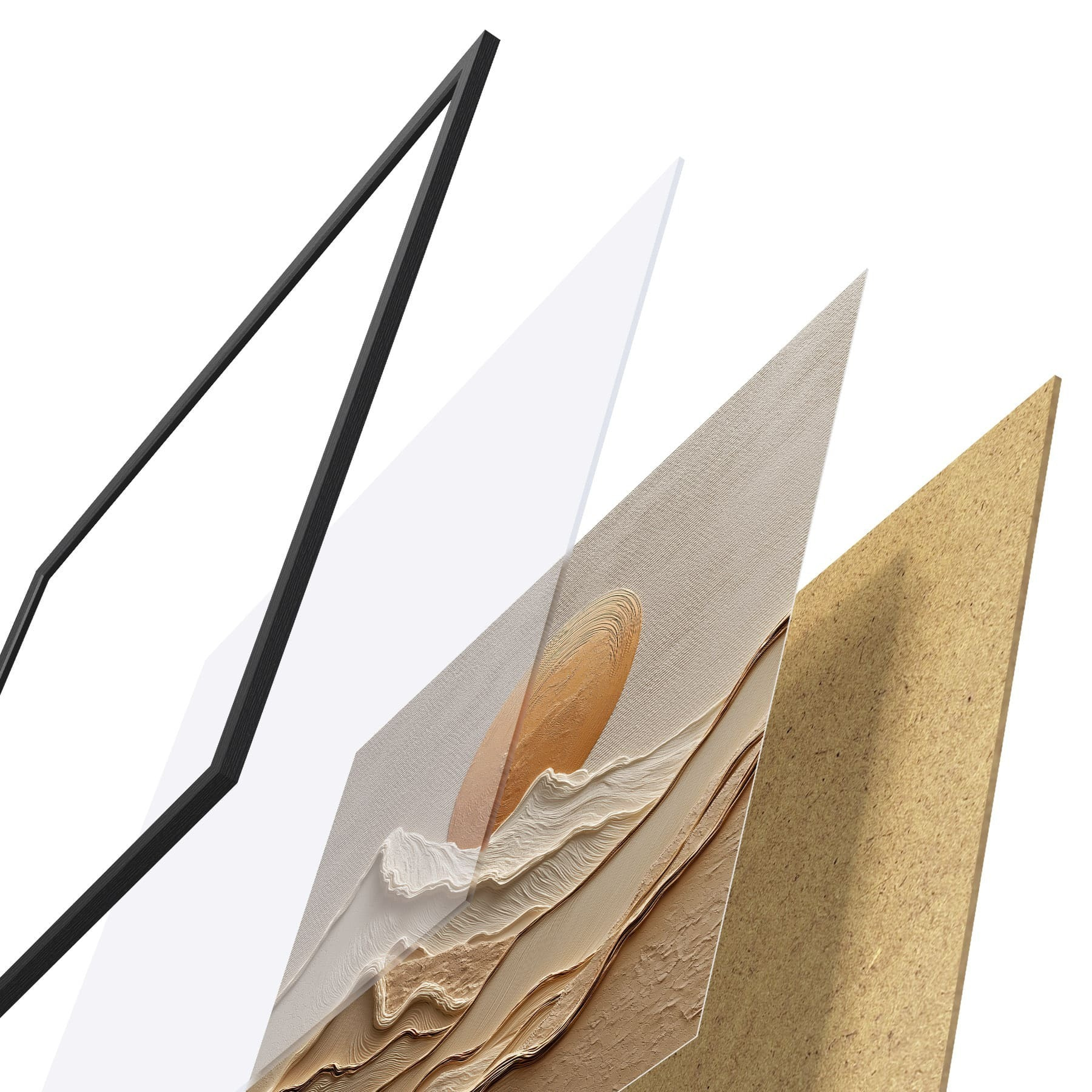 Plakat składa się z ramy, pleksi, wydrukowanego obrazu i podkładu z płyty wiórowej. Plakat można natychmiast zawiesić na ścianie dzięki uchwytom z tyłu.