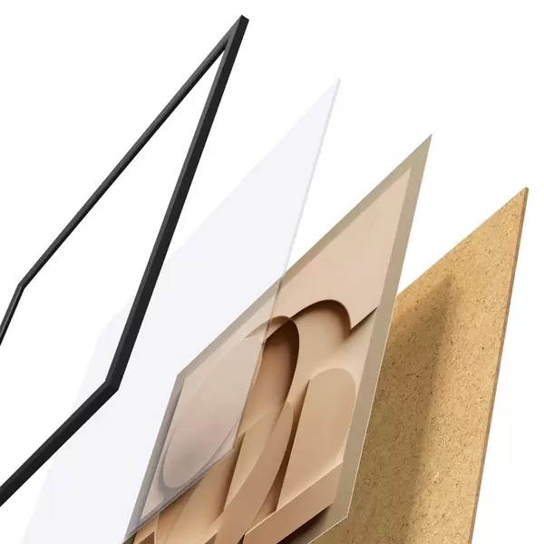 Plakat składa się z ramy, pleksi, wydrukowanego obrazu i podkładu z płyty wiórowej. Plakat można natychmiast zawiesić na ścianie dzięki uchwytom z tyłu.