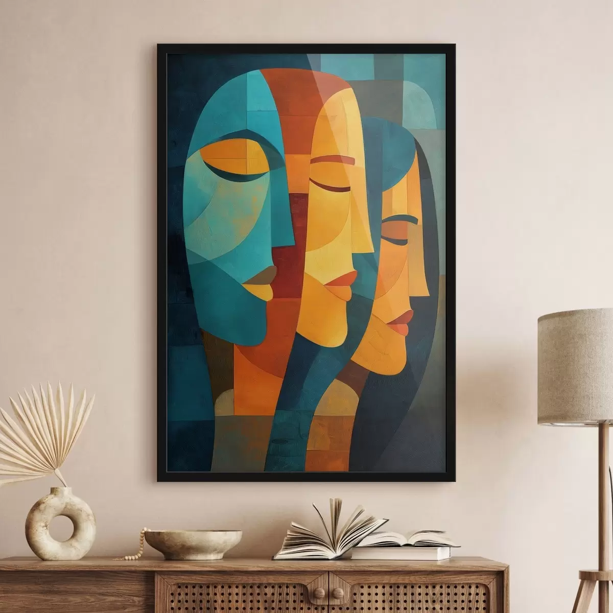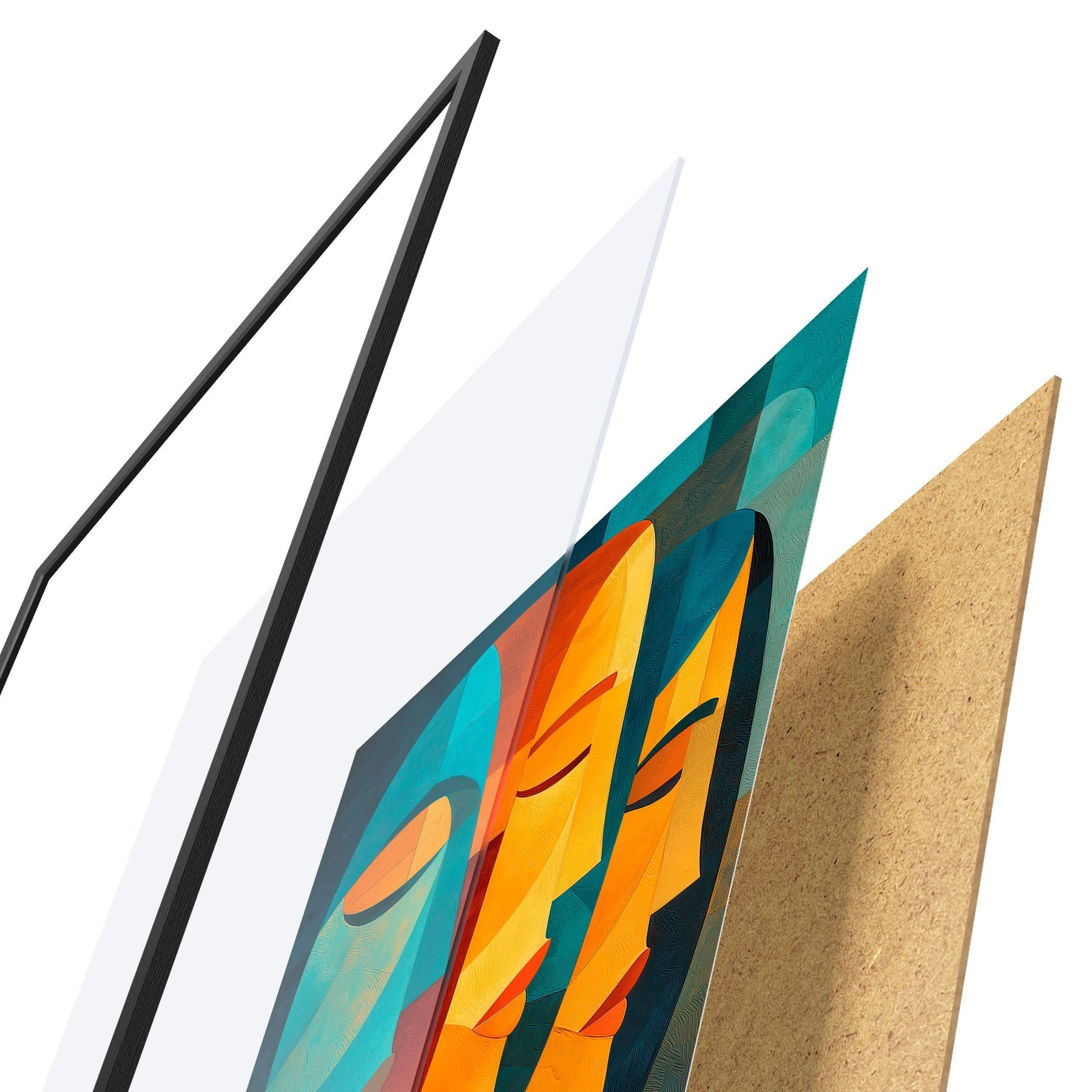 Plakat składa się z ramy, pleksi, wydrukowanego obrazu i podkładu z płyty wiórowej. Plakat można natychmiast zawiesić na ścianie dzięki uchwytom z tyłu.