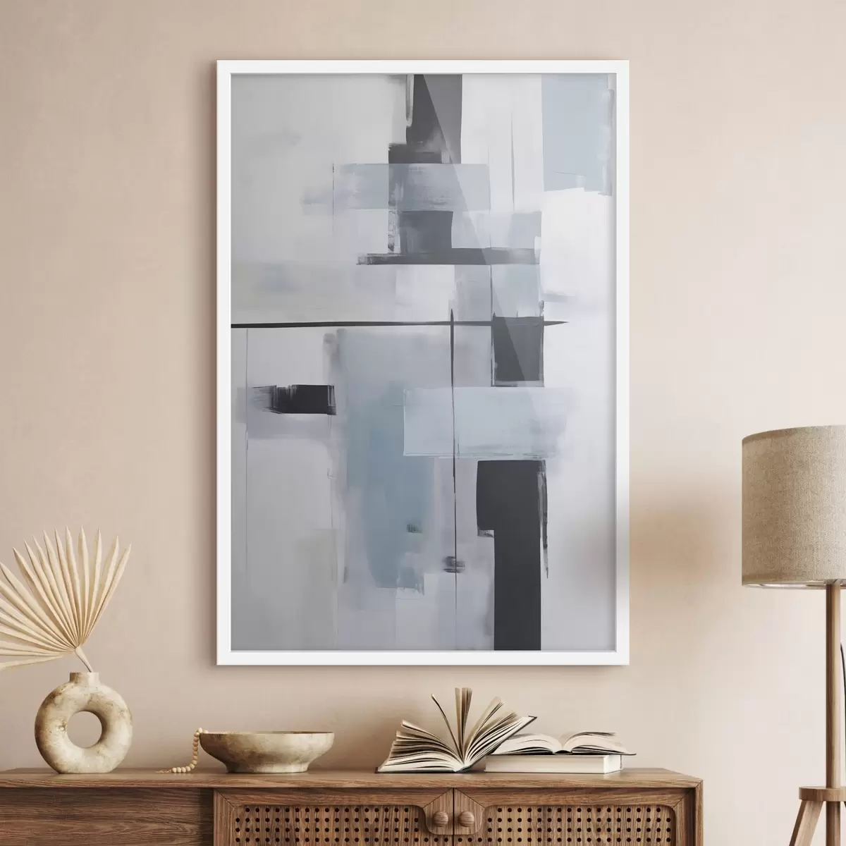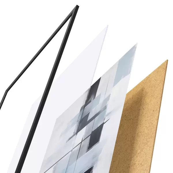 Plakat składa się z ramy, pleksi, wydrukowanego obrazu i podkładu z płyty wiórowej. Plakat można natychmiast zawiesić na ścianie dzięki uchwytom z tyłu.