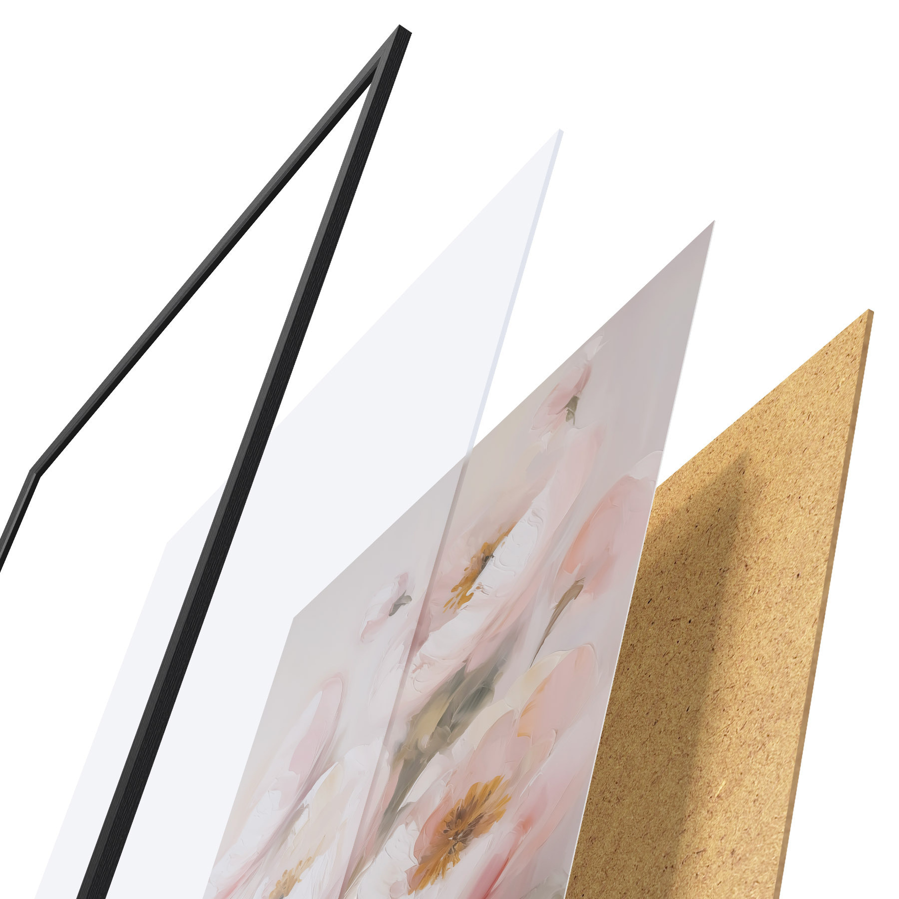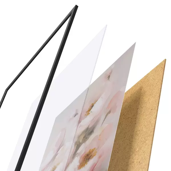 Plakat składa się z ramy, pleksi, wydrukowanego obrazu i podkładu z płyty wiórowej. Plakat można natychmiast zawiesić na ścianie dzięki uchwytom z tyłu.