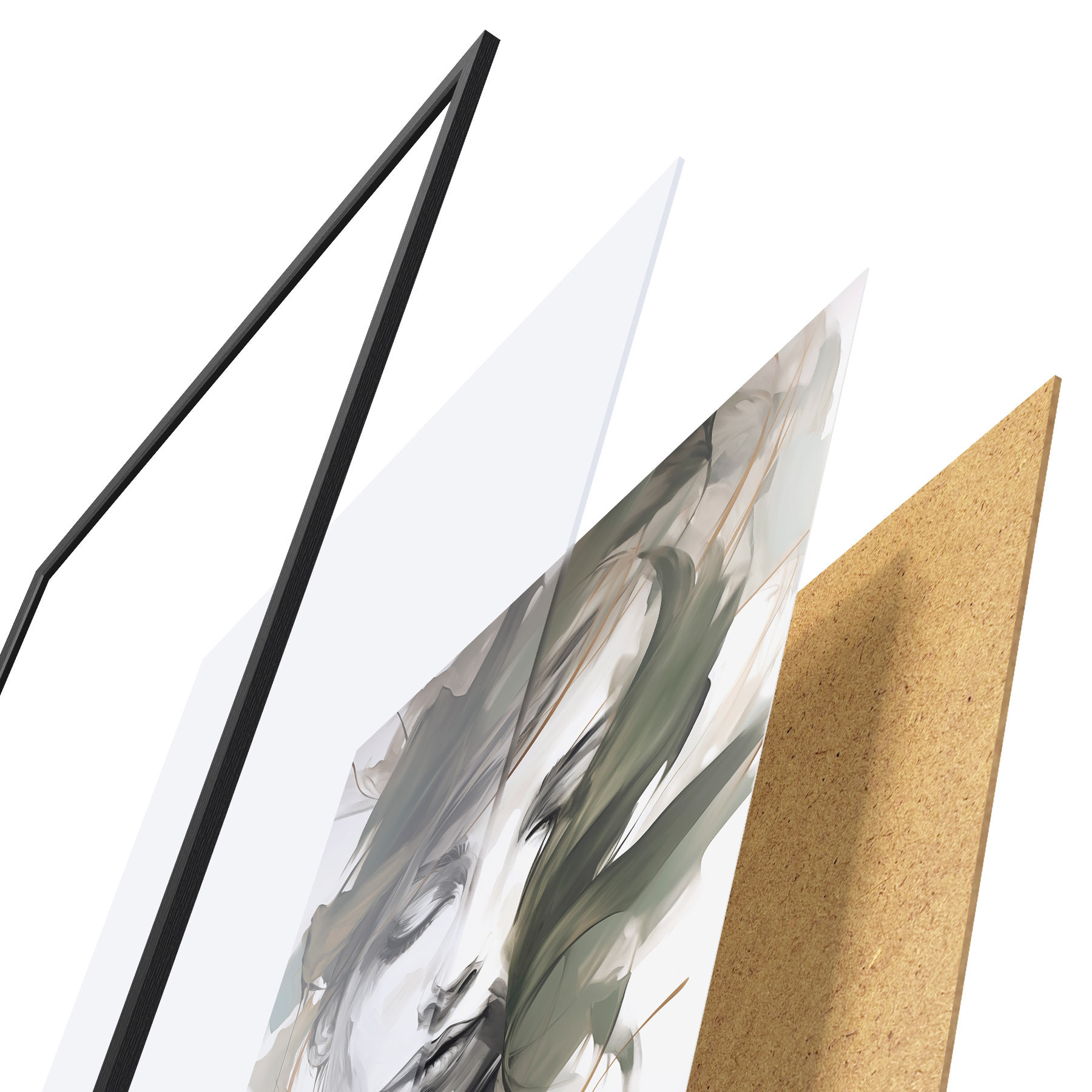 Plakat składa się z ramy, pleksi, wydrukowanego obrazu i podkładu z płyty wiórowej. Plakat można natychmiast zawiesić na ścianie dzięki uchwytom z tyłu.