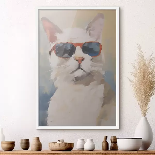 Poster Kot w okularach imitujący obraz Nr f48273