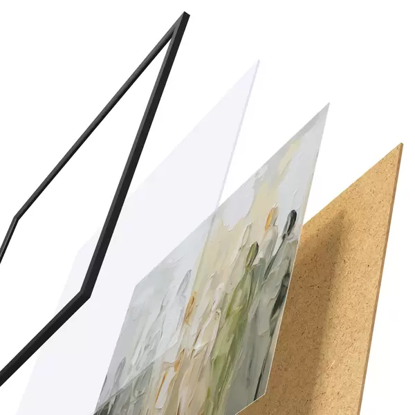 Plakat składa się z ramy, pleksi, wydrukowanego obrazu i podkładu z płyty wiórowej. Plakat można natychmiast zawiesić na ścianie dzięki uchwytom z tyłu.