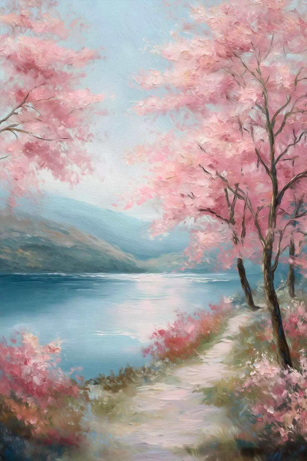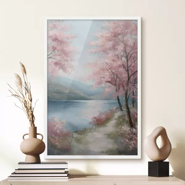 Poster pejzaż z różowymi drzewami w stylu olejnym Nr f48289
