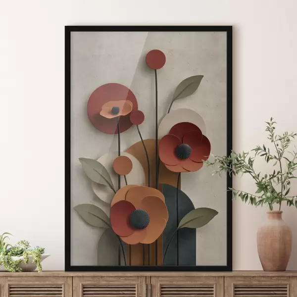 Plakat kwiaty w uproszczonym stylu z efektem objętości f48293