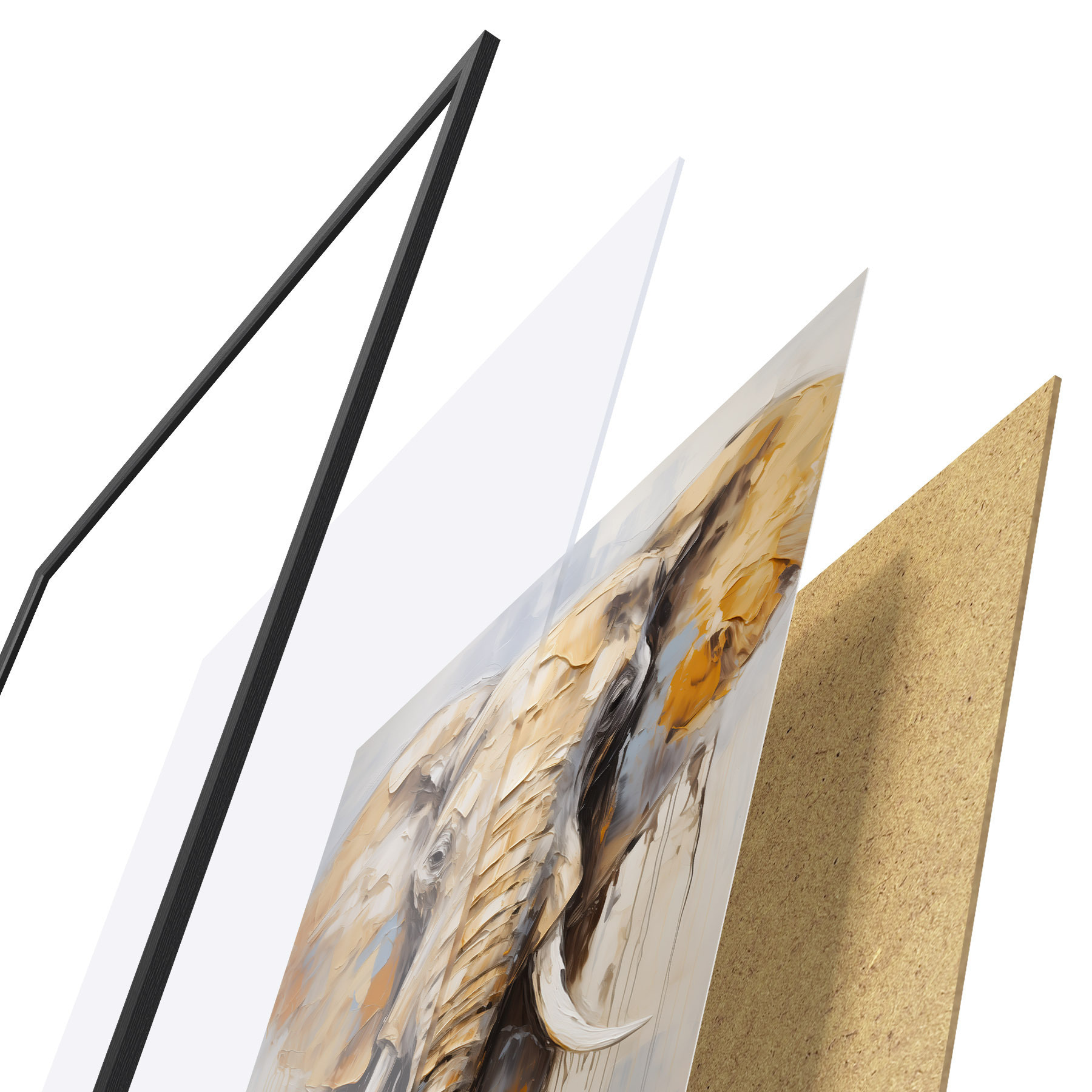 Plakat składa się z ramy, pleksi, wydrukowanego obrazu i podkładu z płyty wiórowej. Plakat można natychmiast zawiesić na ścianie dzięki uchwytom z tyłu.
