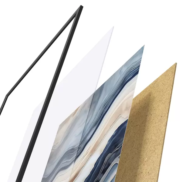 Plakat składa się z ramy, pleksi, wydrukowanego obrazu i podkładu z płyty wiórowej. Plakat można natychmiast zawiesić na ścianie dzięki uchwytom z tyłu.