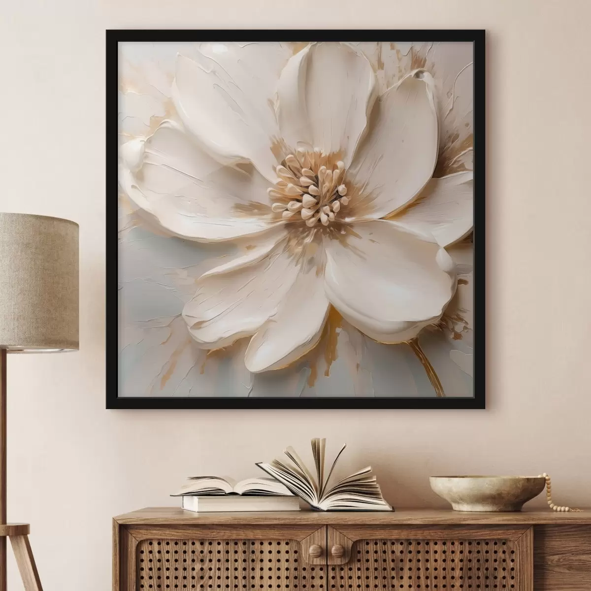 Plakat Biały kwiat o fakturze w delikatnych odcieniach f48339