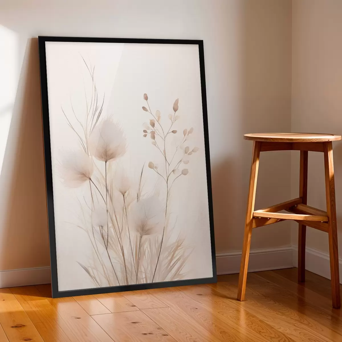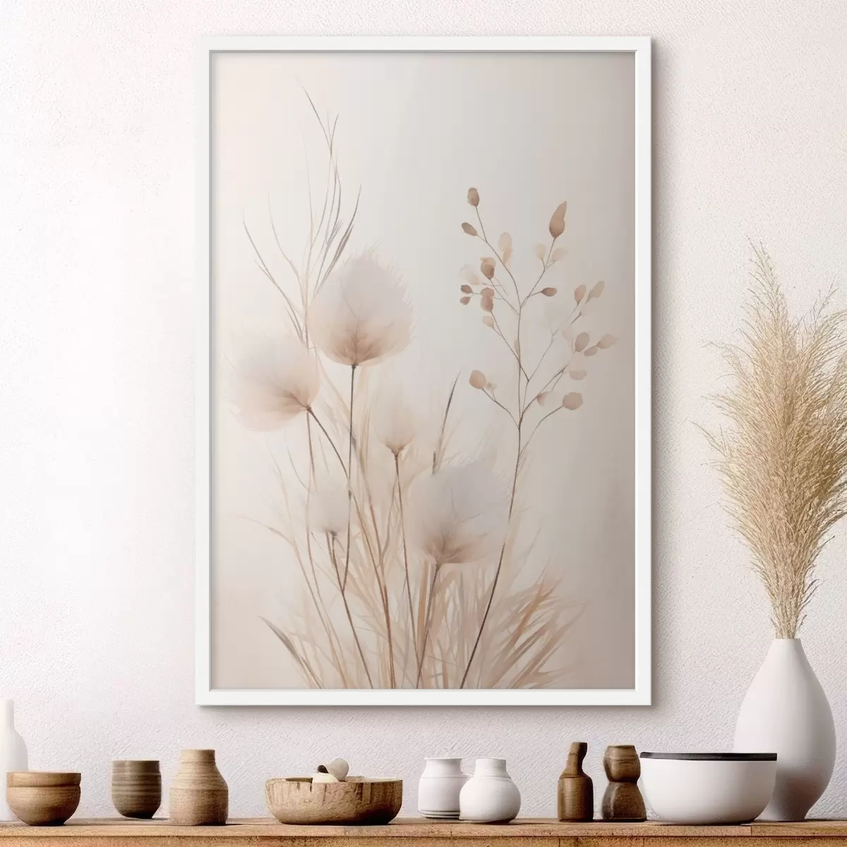 Plakat Delikatne rośliny polne w beżowych odcieniach f48346