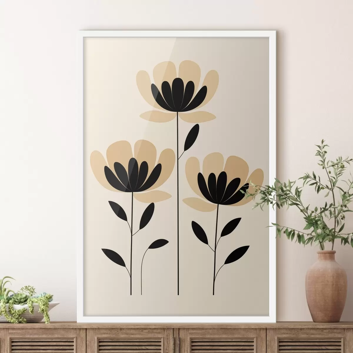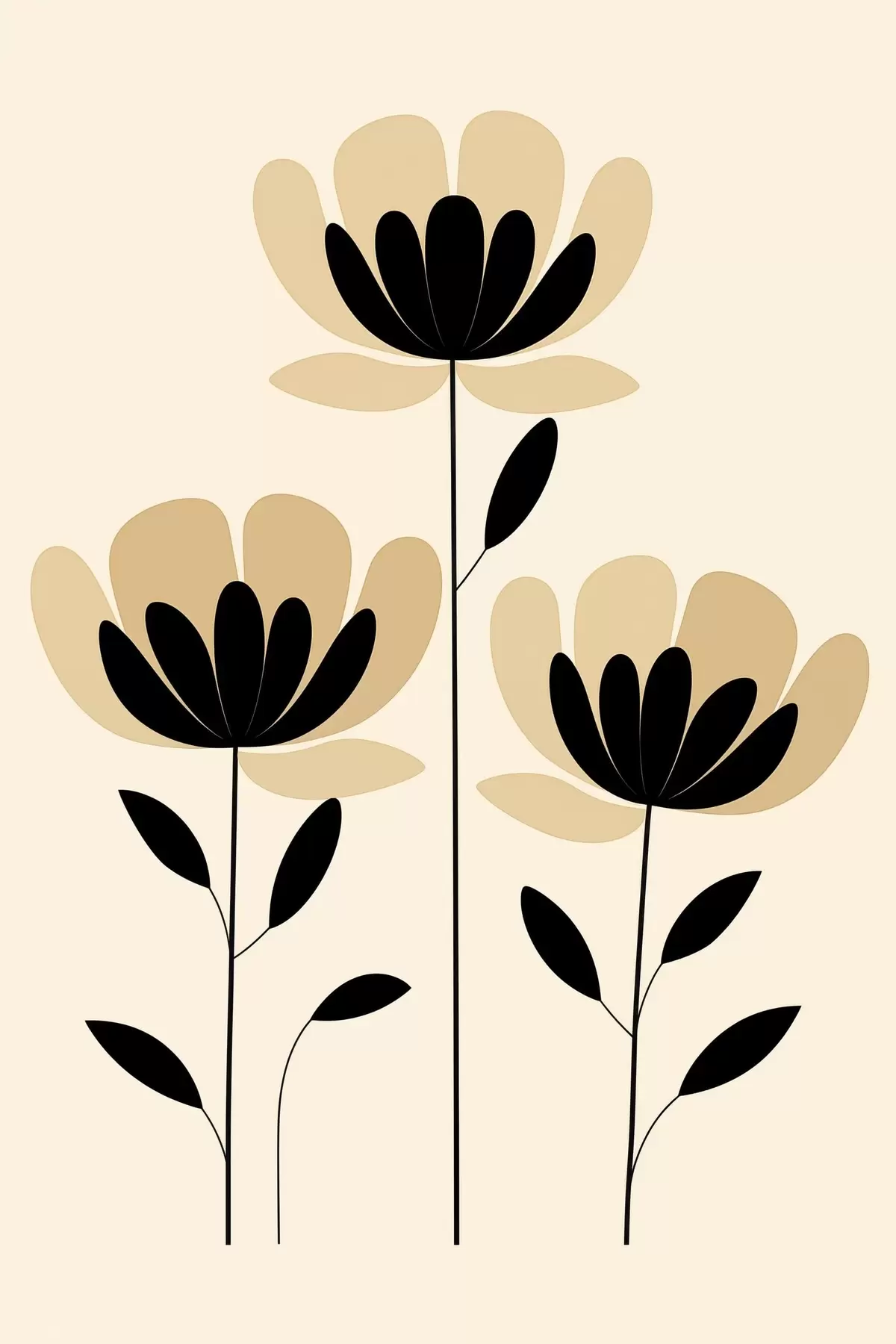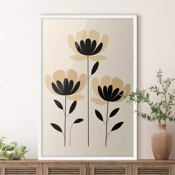 Plakat Minimalistyczne kwiaty w czarno-beżowej stylistyce f48353