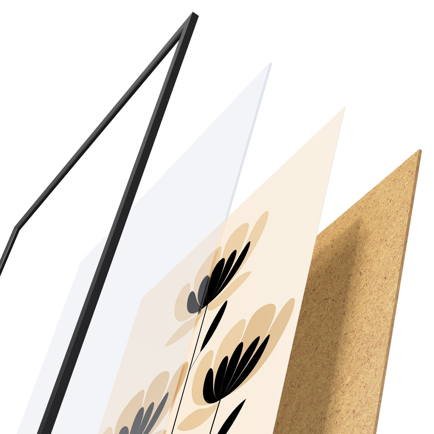Plakat składa się z ramy, pleksi, wydrukowanego obrazu i podkładu z płyty wiórowej. Plakat można natychmiast zawiesić na ścianie dzięki uchwytom z tyłu.