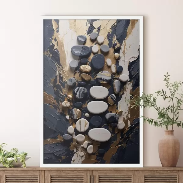 Plakat Kompozycja z abstrakcyjnych kamieni w ciemnoniebieskiej tonacji f48357