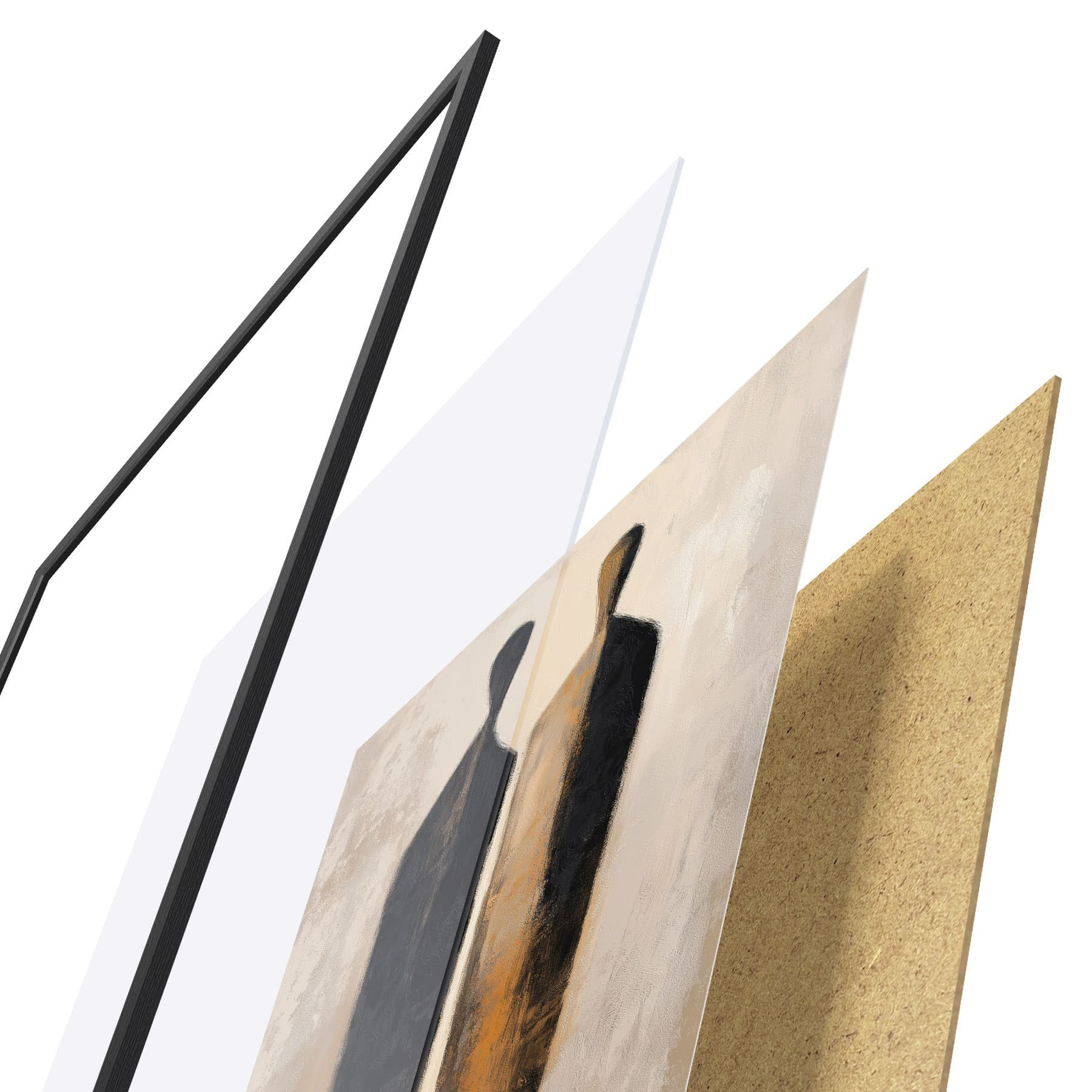 Plakat składa się z ramy, pleksi, wydrukowanego obrazu i podkładu z płyty wiórowej. Plakat można natychmiast zawiesić na ścianie dzięki uchwytom z tyłu.