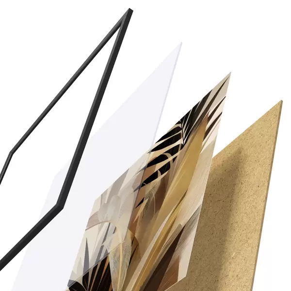 Plakat składa się z ramy, pleksi, wydrukowanego obrazu i podkładu z płyty wiórowej. Plakat można natychmiast zawiesić na ścianie dzięki uchwytom z tyłu.