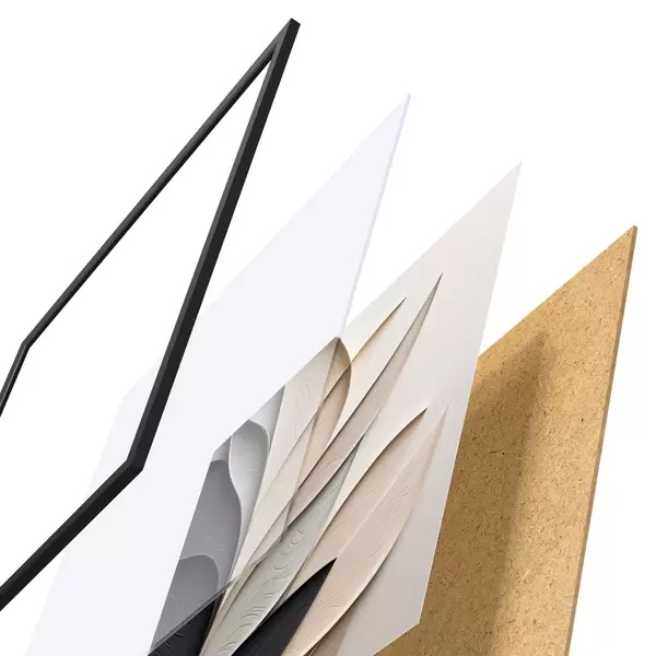 Plakat składa się z ramy, pleksi, wydrukowanego obrazu i podkładu z płyty wiórowej. Plakat można natychmiast zawiesić na ścianie dzięki uchwytom z tyłu.