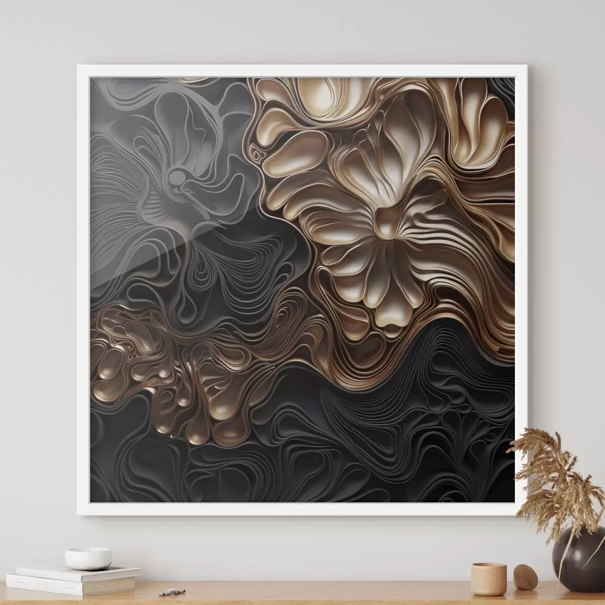 Poster Abstrakcyjne, płynne, organiczne ciemne kształty tworzące teksturowaną sztukę współczesną Nr f48383