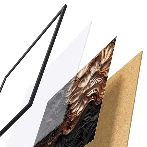 Plakat składa się z ramy, pleksi, wydrukowanego obrazu i podkładu z płyty wiórowej. Plakat można natychmiast zawiesić na ścianie dzięki uchwytom z tyłu.