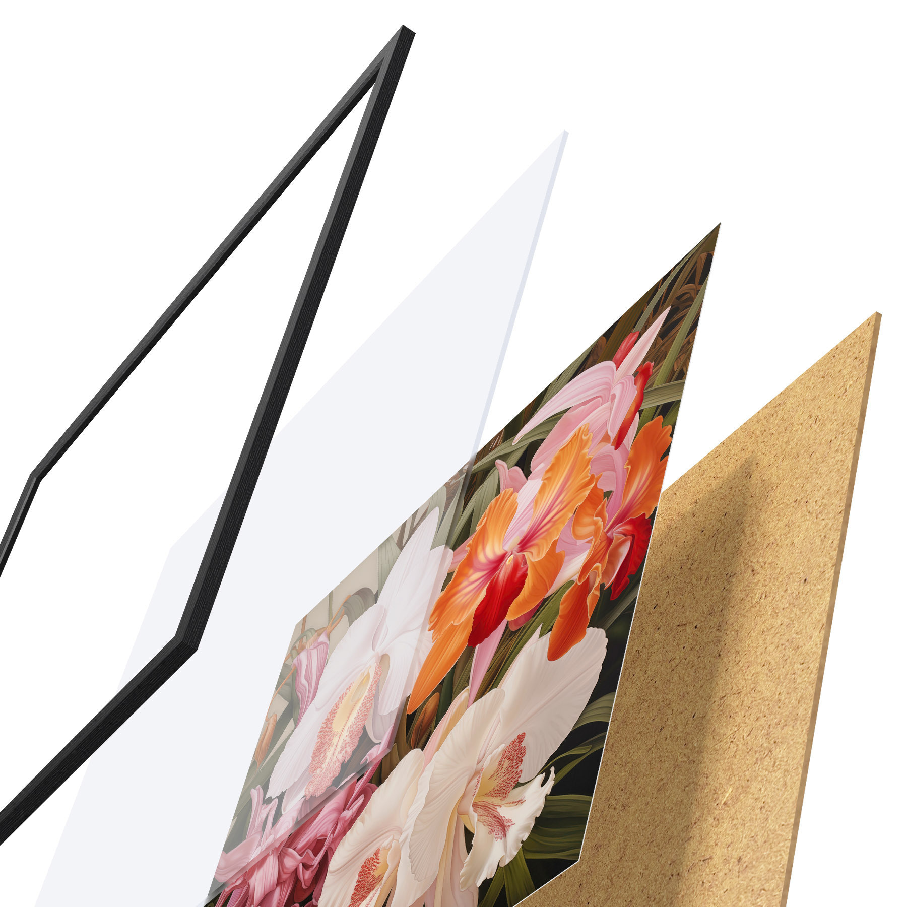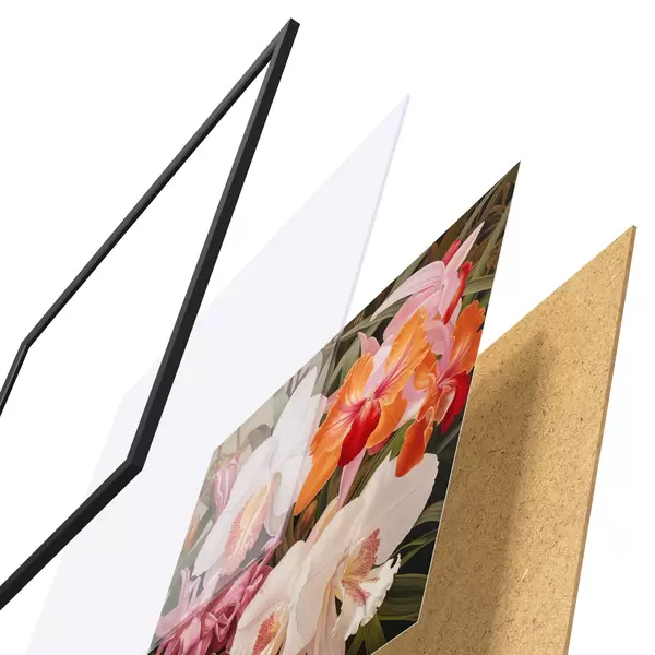 Plakat składa się z ramy, pleksi, wydrukowanego obrazu i podkładu z płyty wiórowej. Plakat można natychmiast zawiesić na ścianie dzięki uchwytom z tyłu.