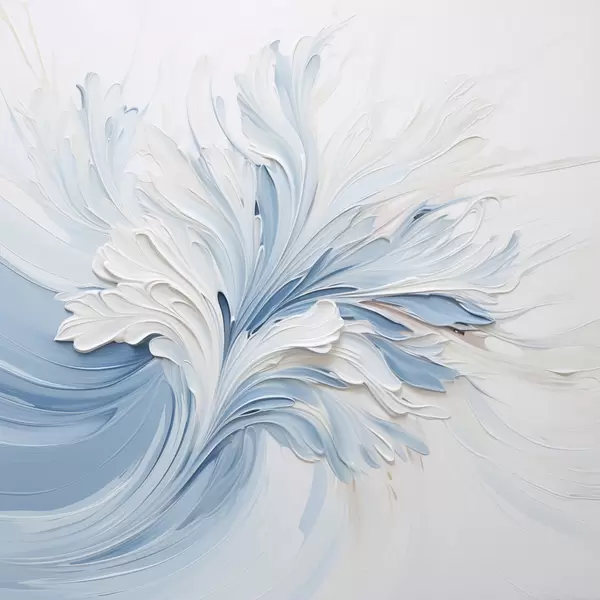 Poster Biało-jasnoniebieski abstrakcyjny wzór kwiatowy z teksturowanymi płatkami i wijącymi się liniami Nr f48395