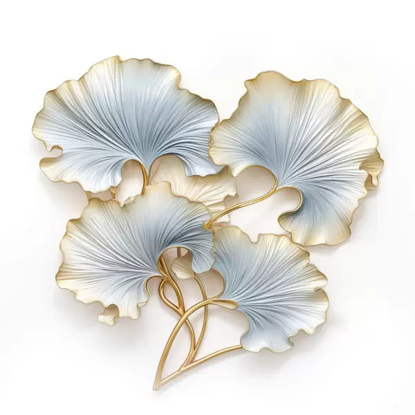 Plakat Stylizowane liście miłorzębu z niebieskimi i żółtymi akcentami f48397