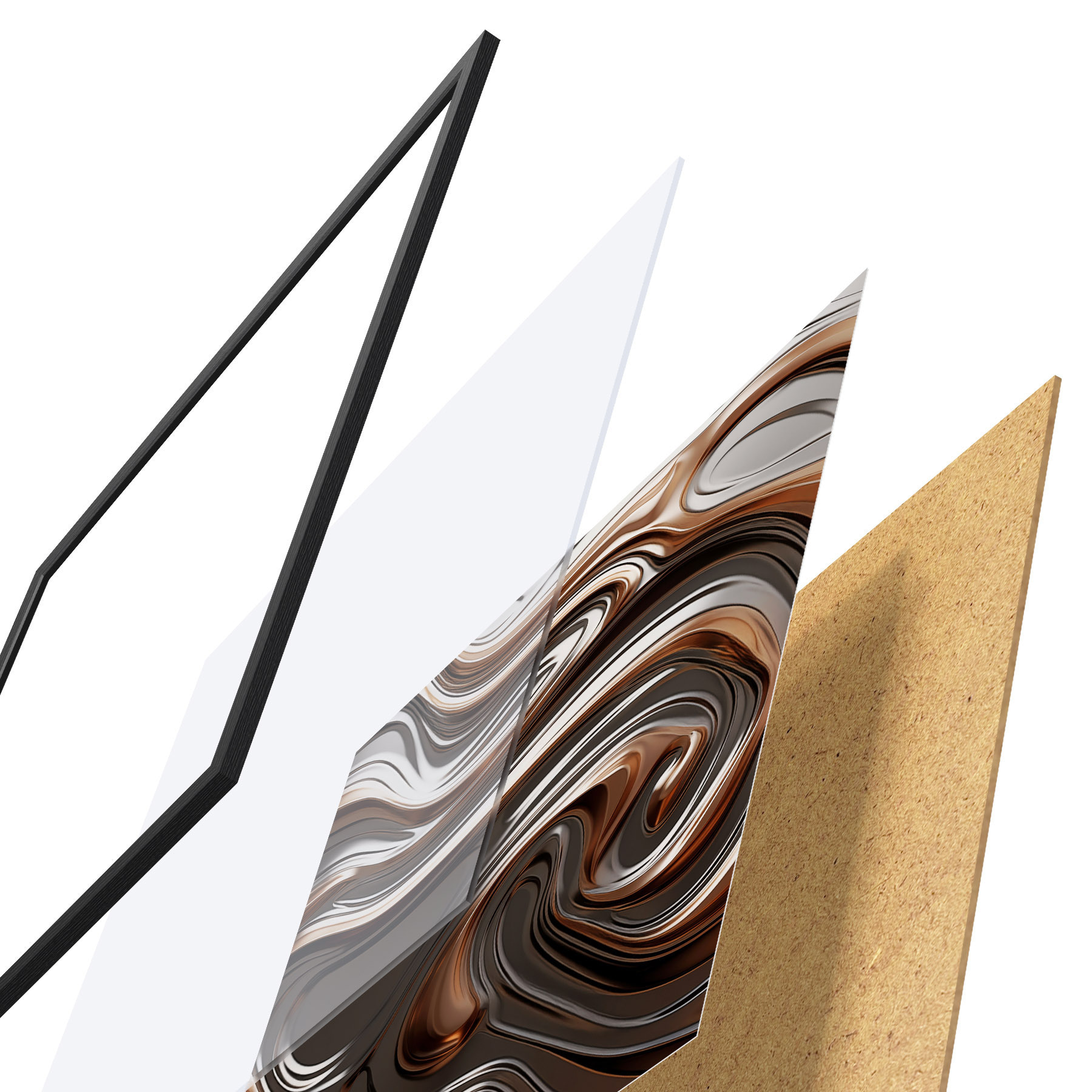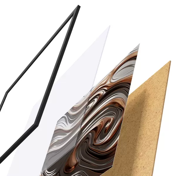 Plakat składa się z ramy, pleksi, wydrukowanego obrazu i podkładu z płyty wiórowej. Plakat można natychmiast zawiesić na ścianie dzięki uchwytom z tyłu.