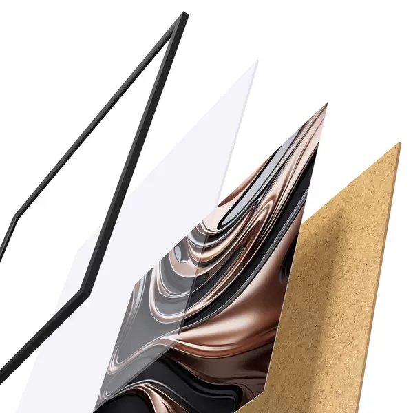 Plakat składa się z ramy, pleksi, wydrukowanego obrazu i podkładu z płyty wiórowej. Plakat można natychmiast zawiesić na ścianie dzięki uchwytom z tyłu.