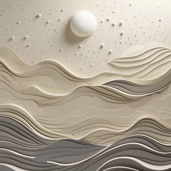 Poster Minimalistyczny, stylizowany pejzaż z falistymi wzgórzami i wielkim księżycem na gwiaździstym niebie; sztuka abstrakcyjna Nr f48402