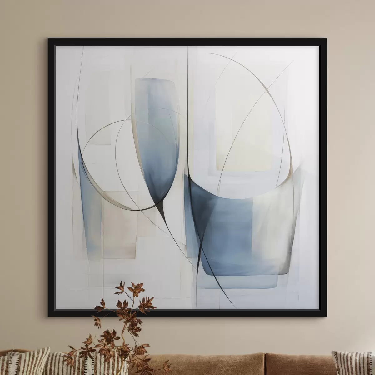 Plakat Abstrakcyjna, minimalistyczna kompozycja z niebieskimi i beżowymi kształtami f48403