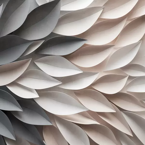 Poster Teksturowane, nakładające się na siebie abstrakcyjne kształty liści w neutralnych odcieniach beżu, kremu i szarości Nr f48408