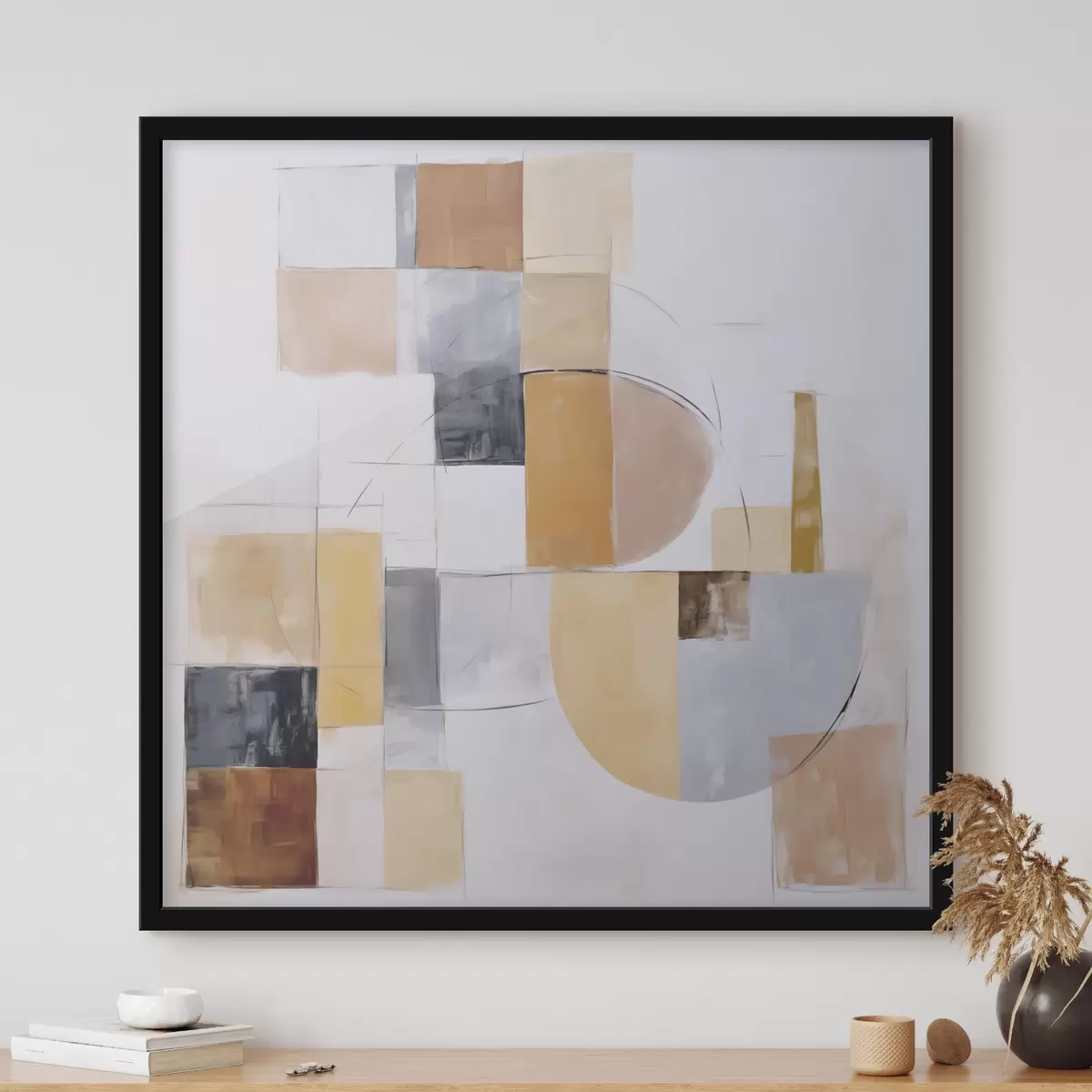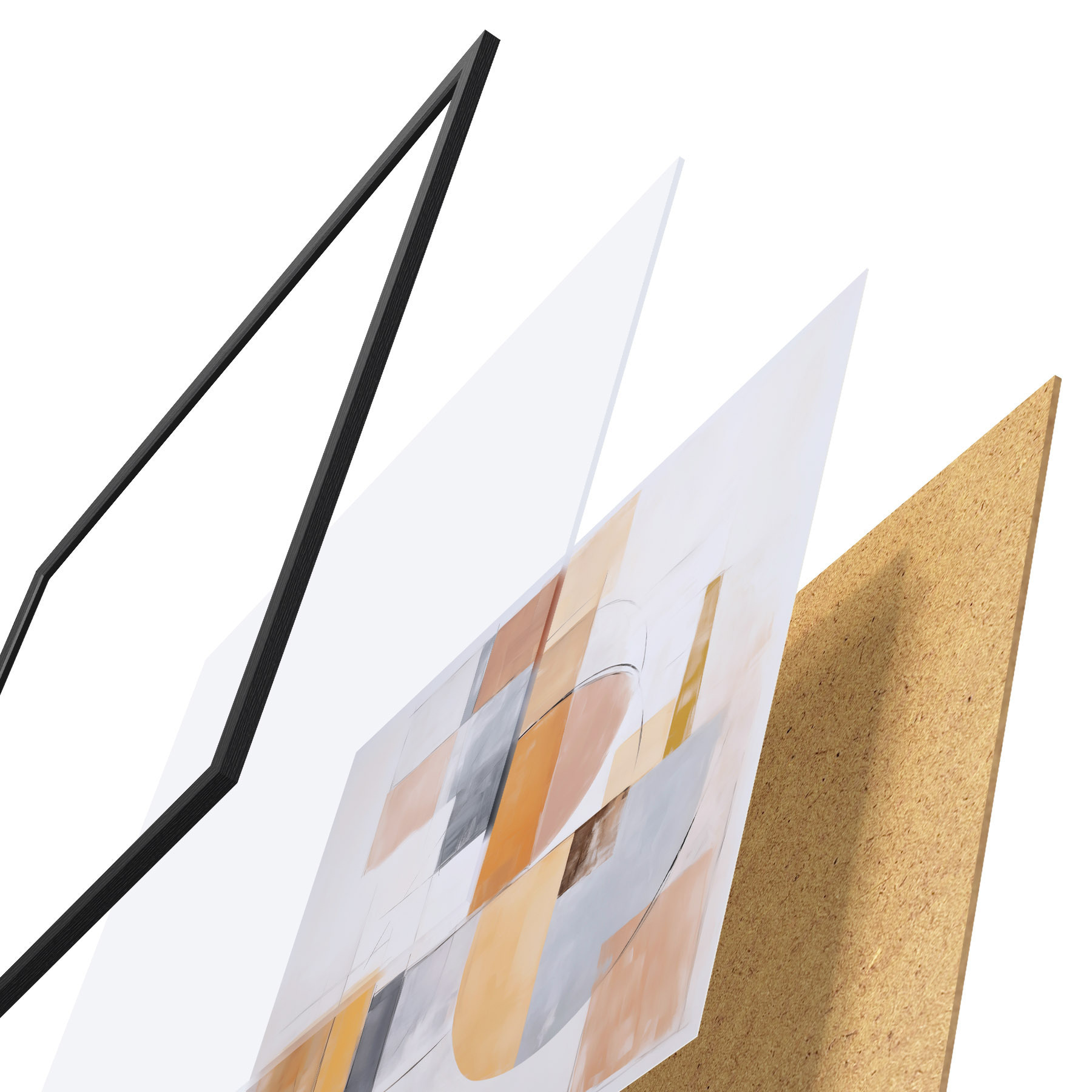 Plakat składa się z ramy, pleksi, wydrukowanego obrazu i podkładu z płyty wiórowej. Plakat można natychmiast zawiesić na ścianie dzięki uchwytom z tyłu.