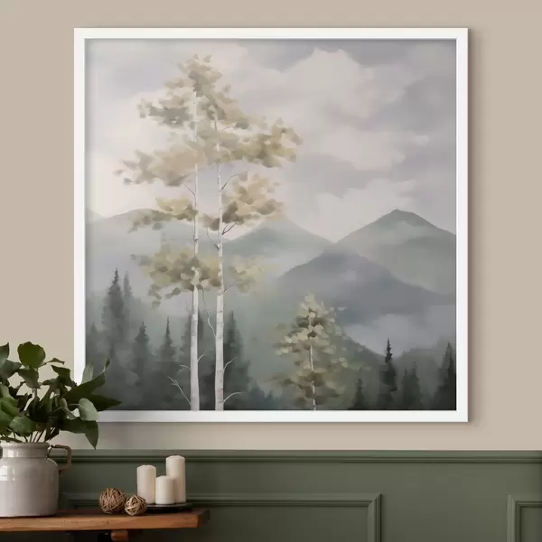 Poster Drzewa na tle gór, imitacja obrazu Nr f48421