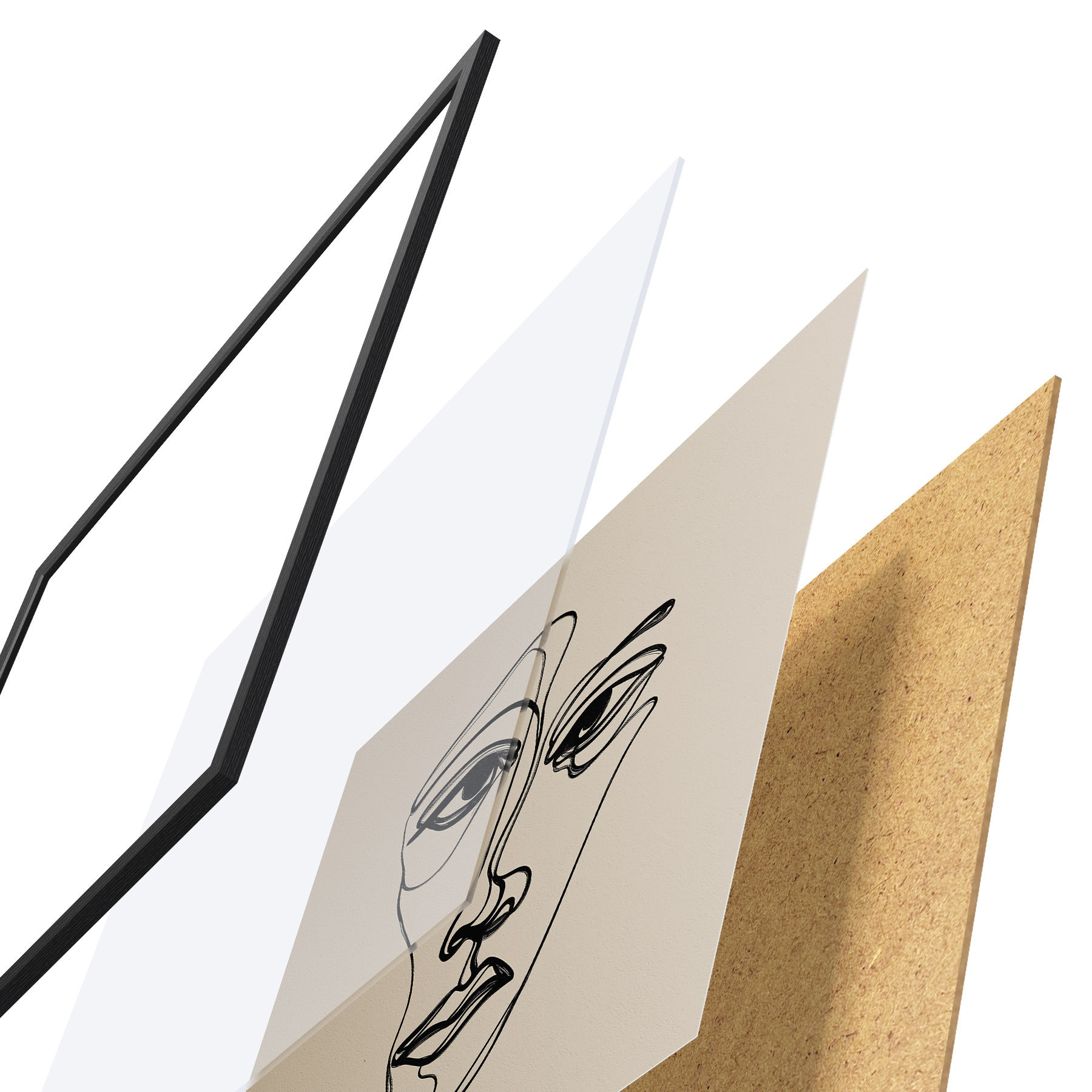 Plakat składa się z ramy, pleksi, wydrukowanego obrazu i podkładu z płyty wiórowej. Plakat można natychmiast zawiesić na ścianie dzięki uchwytom z tyłu.