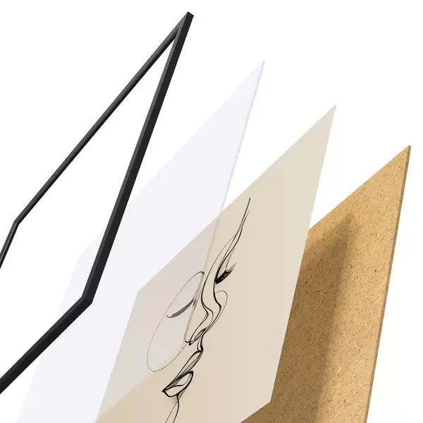 Plakat składa się z ramy, pleksi, wydrukowanego obrazu i podkładu z płyty wiórowej. Plakat można natychmiast zawiesić na ścianie dzięki uchwytom z tyłu.