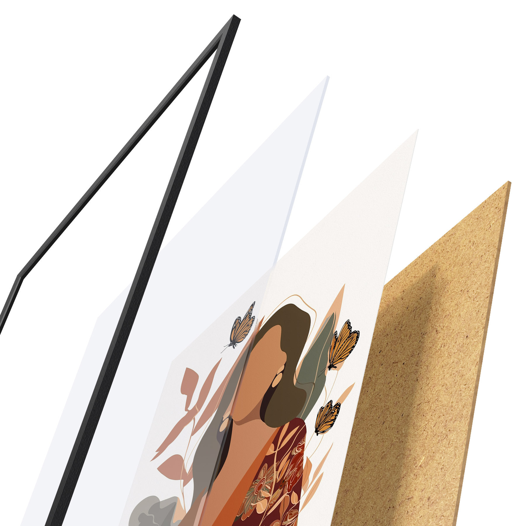 Plakat składa się z ramy, pleksi, wydrukowanego obrazu i podkładu z płyty wiórowej. Plakat można natychmiast zawiesić na ścianie dzięki uchwytom z tyłu.