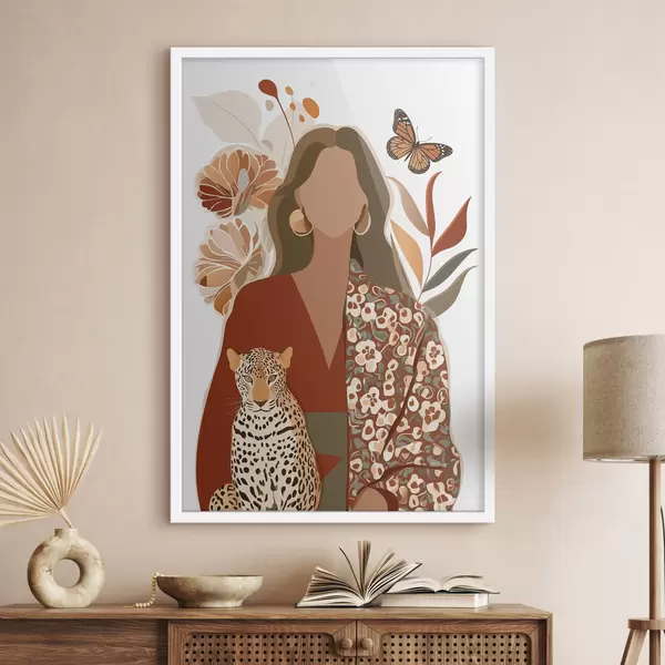 Plakat Kobieta na tle kwiatowym f48435