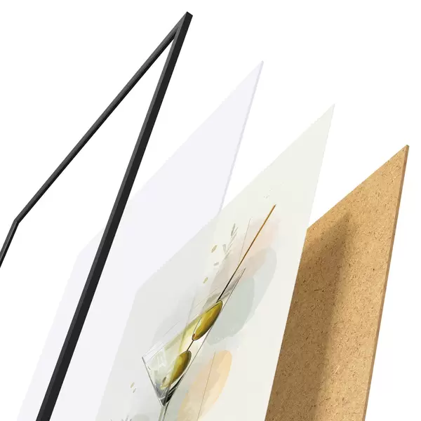 Plakat składa się z ramy, pleksi, wydrukowanego obrazu i podkładu z płyty wiórowej. Plakat można natychmiast zawiesić na ścianie dzięki uchwytom z tyłu.