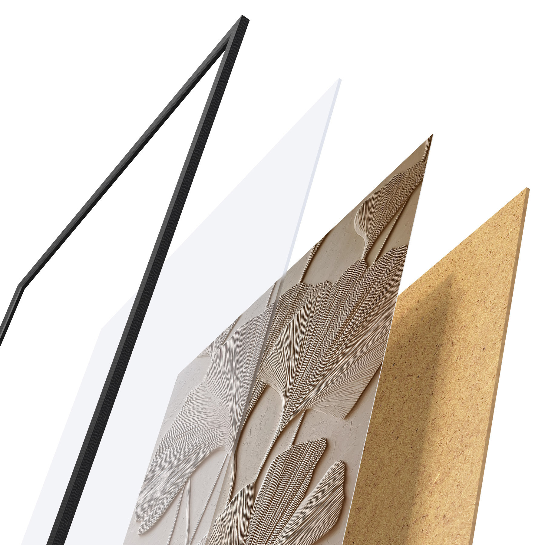 Plakat składa się z ramy, pleksi, wydrukowanego obrazu i podkładu z płyty wiórowej. Plakat można natychmiast zawiesić na ścianie dzięki uchwytom z tyłu.