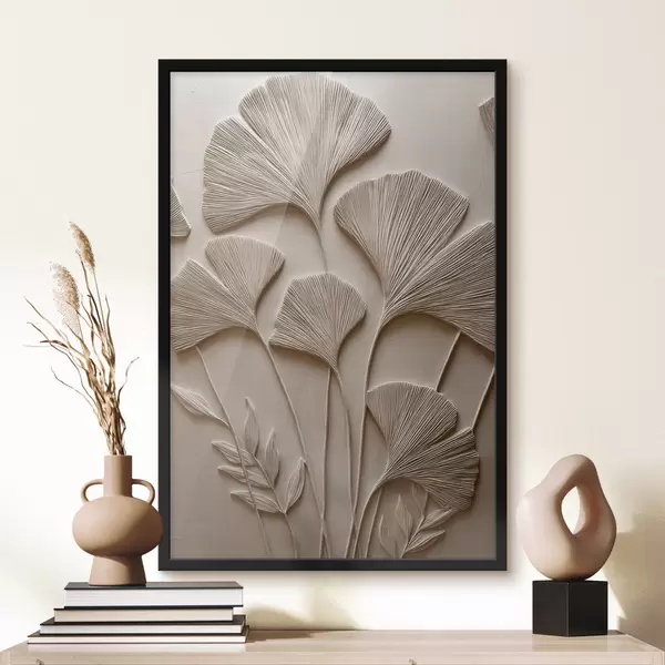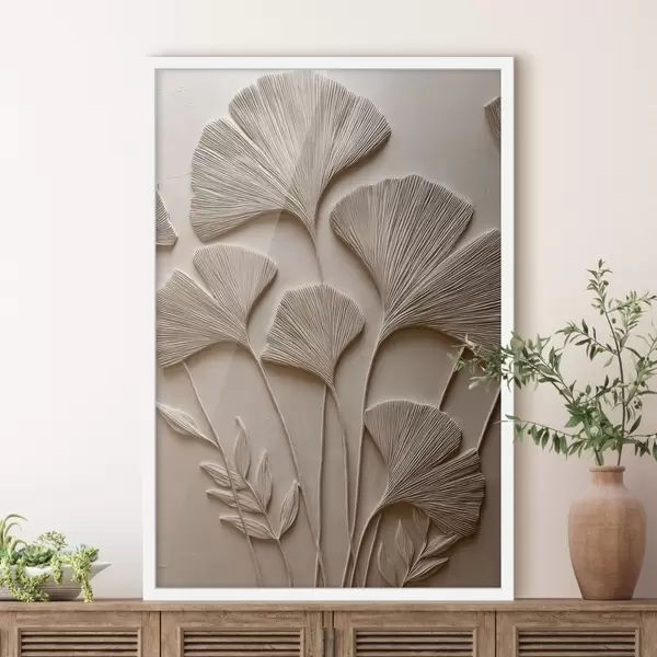 Plakat Dekoracyjna płaskorzeźba liści f48448