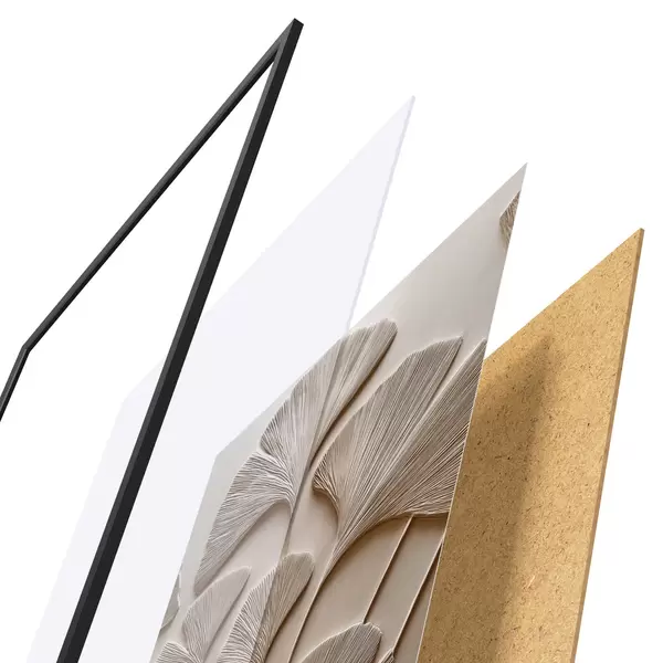 Plakat składa się z ramy, pleksi, wydrukowanego obrazu i podkładu z płyty wiórowej. Plakat można natychmiast zawiesić na ścianie dzięki uchwytom z tyłu.