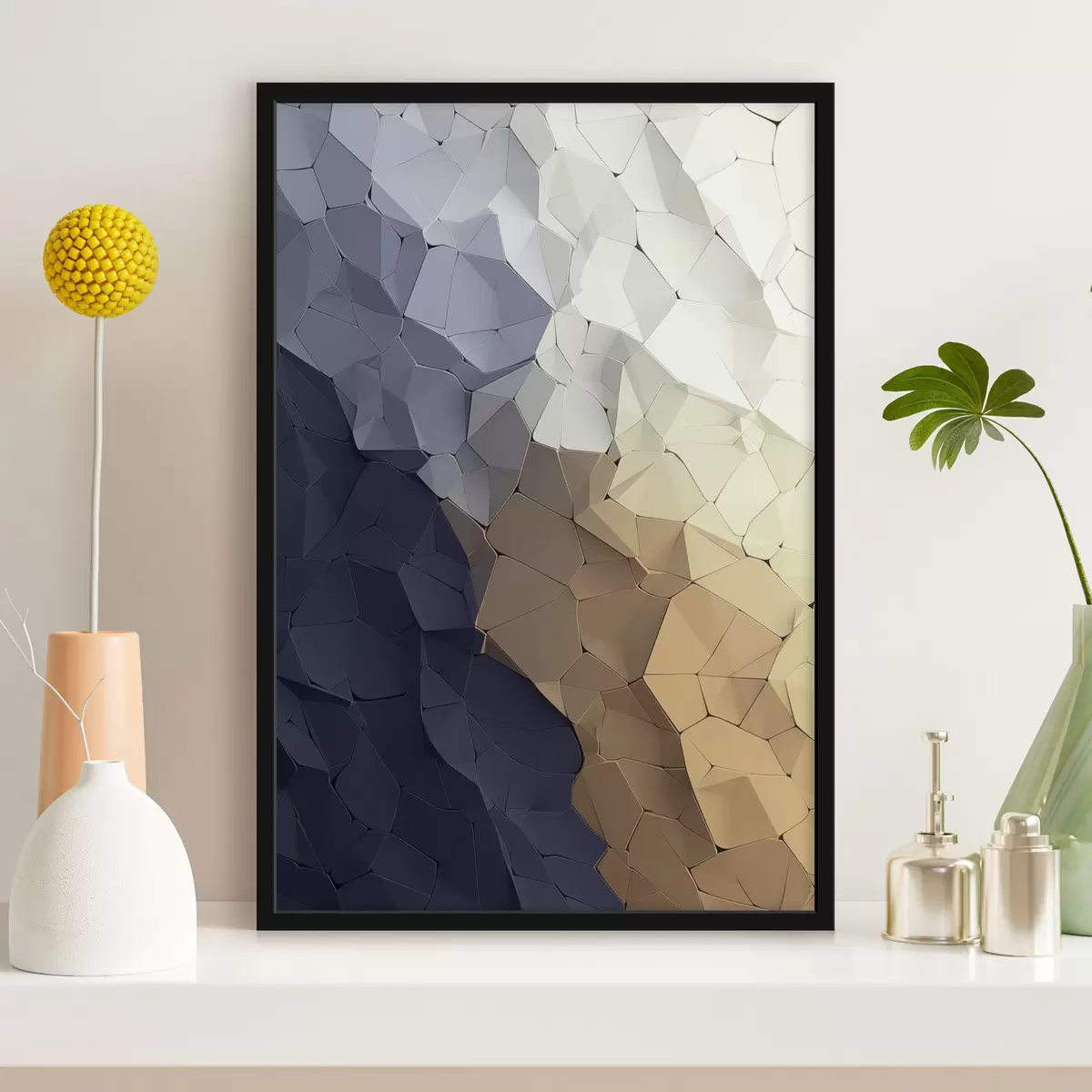 Poster Geometryczna abstrakcja w odcieniach beżu i grafitu, nowoczesna sztuka z wyrazistą fakturą Nr f48478