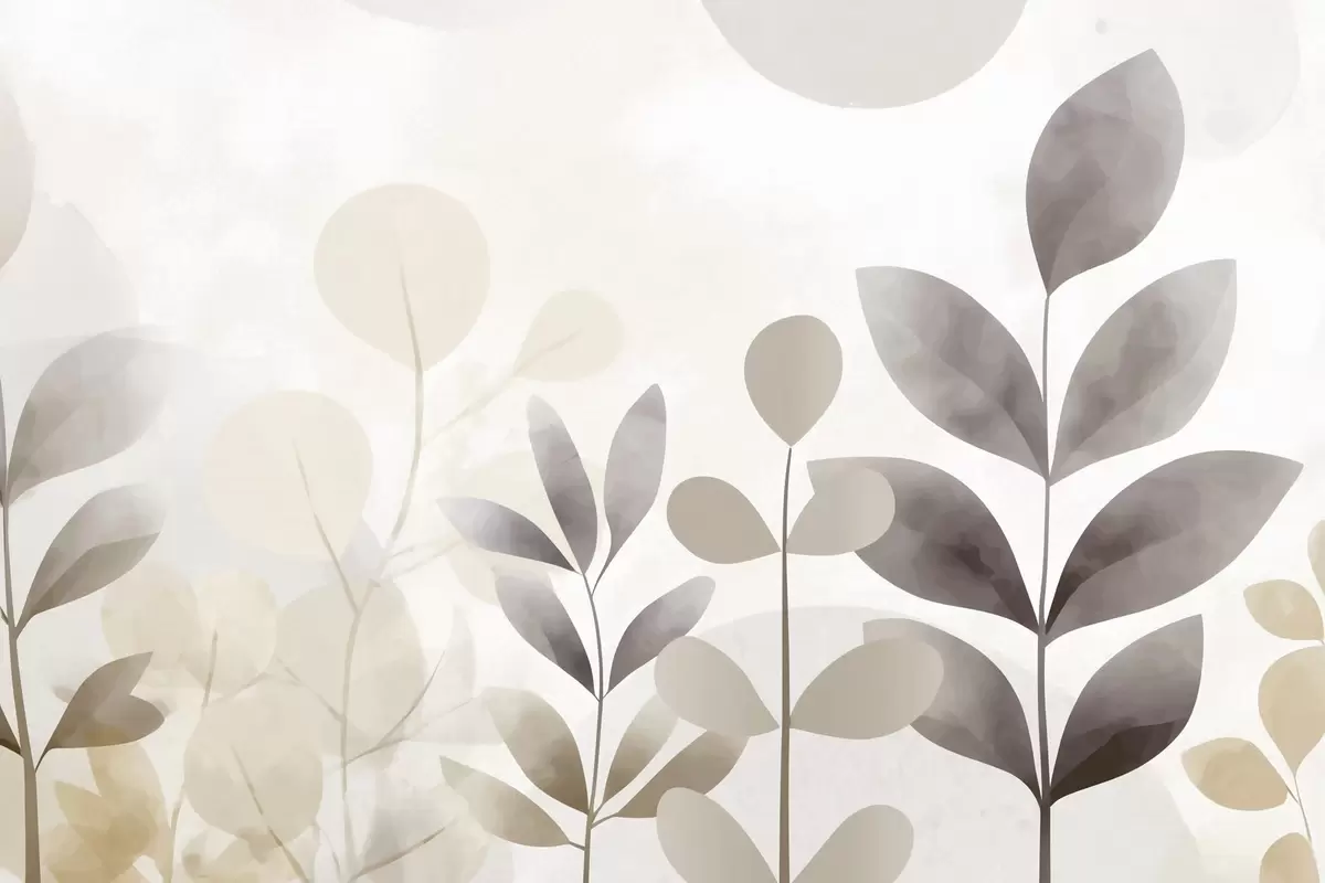 Poster Beżowe i szare sylwetki liści, minimalizm Nr f48487