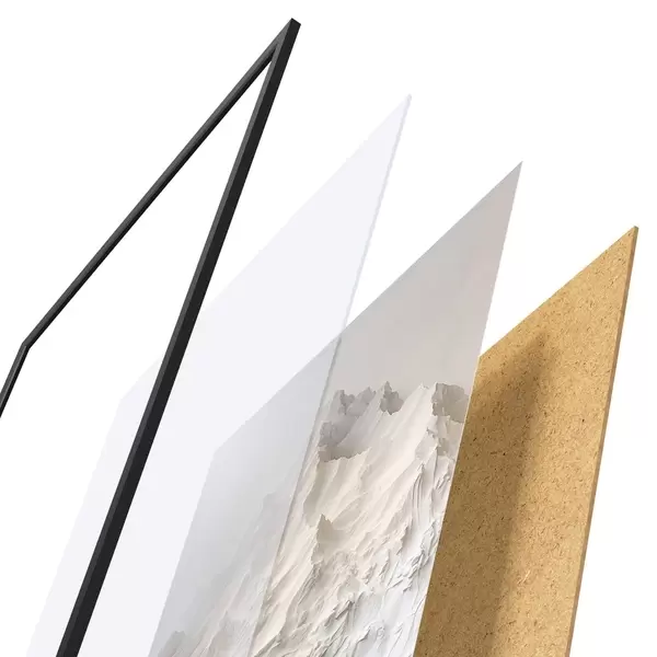 Plakat składa się z ramy, pleksi, wydrukowanego obrazu i podkładu z płyty wiórowej. Plakat można natychmiast zawiesić na ścianie dzięki uchwytom z tyłu.