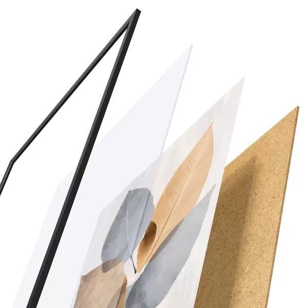 Plakat składa się z ramy, pleksi, wydrukowanego obrazu i podkładu z płyty wiórowej. Plakat można natychmiast zawiesić na ścianie dzięki uchwytom z tyłu.