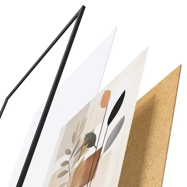 Plakat składa się z ramy, pleksi, wydrukowanego obrazu i podkładu z płyty wiórowej. Plakat można natychmiast zawiesić na ścianie dzięki uchwytom z tyłu.
