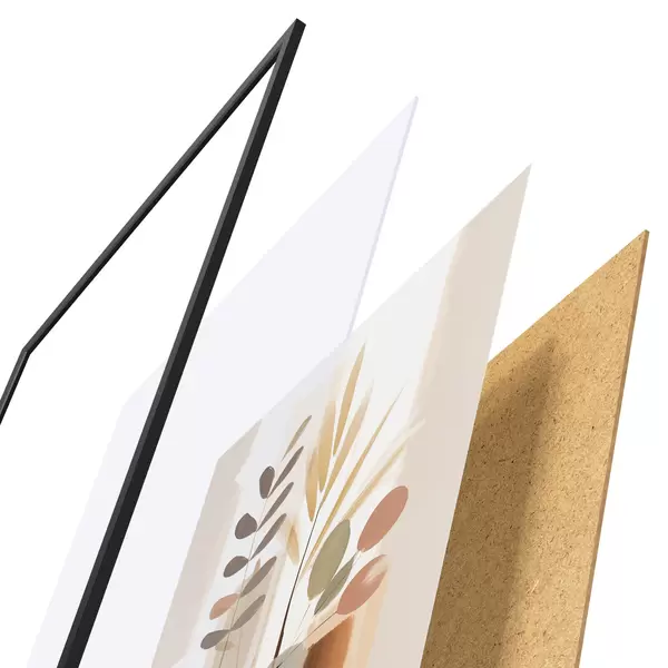 Plakat składa się z ramy, pleksi, wydrukowanego obrazu i podkładu z płyty wiórowej. Plakat można natychmiast zawiesić na ścianie dzięki uchwytom z tyłu.